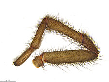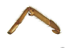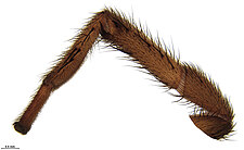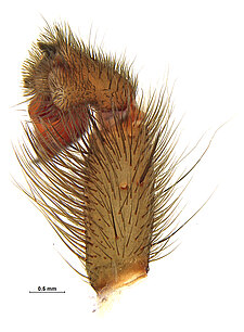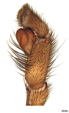 Similar to the members of the family Theraphosidae, the Barychelidae include species that have dense tufts of setae on their claws, but differ from the Theraphosidae by the shorter posterior lateral spinnerets that do not protrude from under the abdomen.