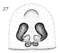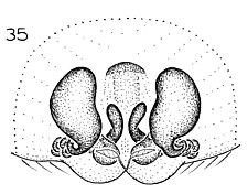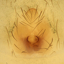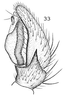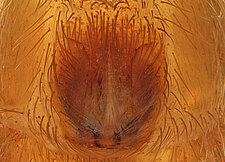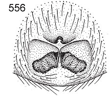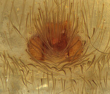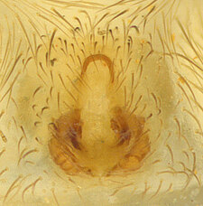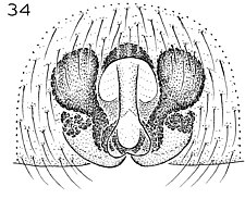 Compared to other Molycriinae, relatively short anterior lateral spinnerets and peculiar paramedian rows of stiff, erect setae found on the abdominal venter.