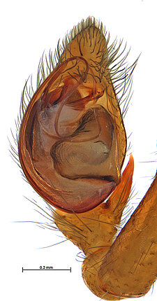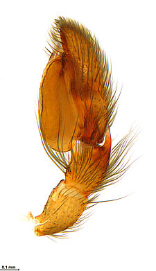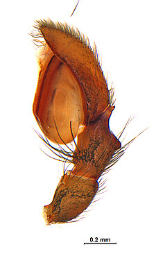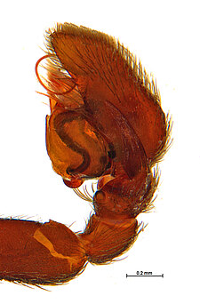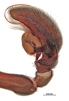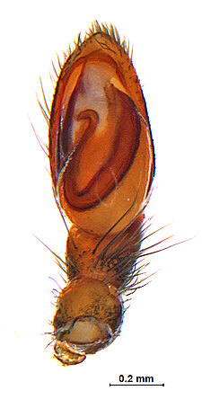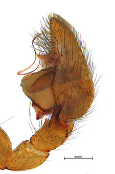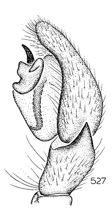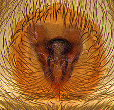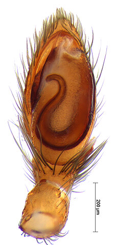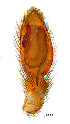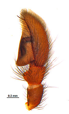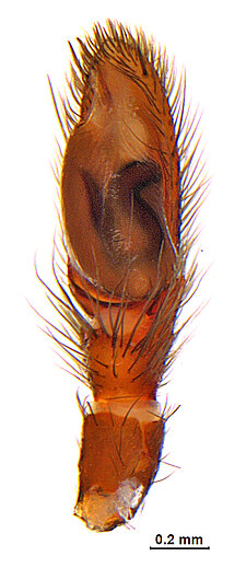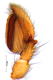 Members of Notsodipus but can be distinguished from those of Asadipus by the unexcavated retrolateral tibial apophysis of males and the deep anterior epigynal atrium and highly coiled posterior ducts of females.