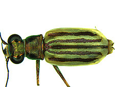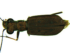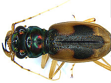 (after Hangay & Zborowski 2010): Body shape usualy elongate and dark, often fused with metallic colours, 2.5-80mm long. Elytra are usually striate, often handsomely sculptured. Hind coxae divide the first abdominal segment. Antennae are usually 11-segmented, thread-like, or bead-like, rarely form a 2- or 10-segmented, flattened, broad lamina. Antennae stem from between the eyes and mandible. Lengs usually long and strong, adapted for fast running. Tarsal formula 5-5-5.