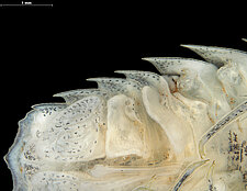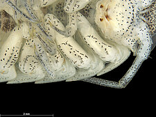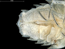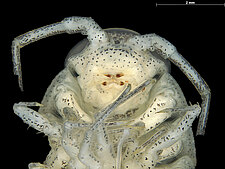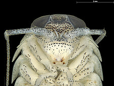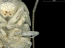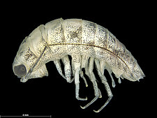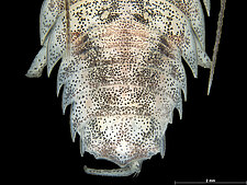 (from Australian Faunal Directory; biodiversity.org.au/afd/taxa/LIGIIDAE ): Dorsal surface of body shallowly convex; animal does not conglobate. Eye with many ommatidia in Ligia; eye of moderate size in Ligidioides. Antenna 1 with 3 articles. Antenna 2 flagellum with more than 10 articles in Australasian species. Mandible with molar process. Maxillipedal palp with 5 articles. Pereonal epimera 2–7 (coxae) fused to corresponding tergites (although suture lines may be visible in female). Dactylar organ present on each pereopod in Ligia. Male with pair of penes. Pleopod 2 of male modified as copulatory structure. Without pleopodal lungs. Uropod attached terminally and projecting beyond telson; rami styliform.
