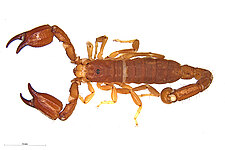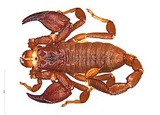 Prendini L (2000): Phylogeny and classification of the superfamily Scorpionoidea Latreille 1802 (Chelicerata, Scorpiones): an Exemplar Approach. Cladistics. 16: 1 - 78
