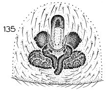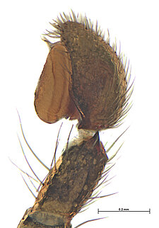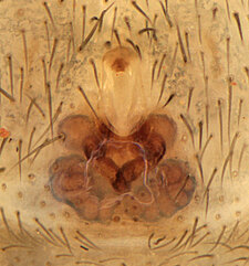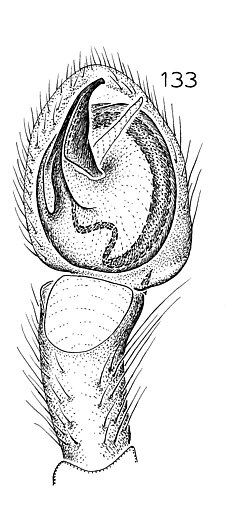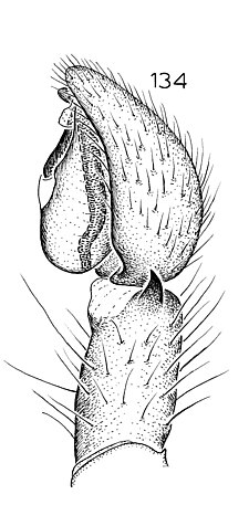 (after Platnick 2002): Males of Oreo differ from those of Meedo by having some leg spines, from those of Peeto by lacking cheliceral teeth, and from those of Neato by having a distally thin embolus, the tip of which rests in a heavily sclerotized conductor; females can be recognized by the small, rectangular anterior epigynal atrium and by the bipartite spermathecae.