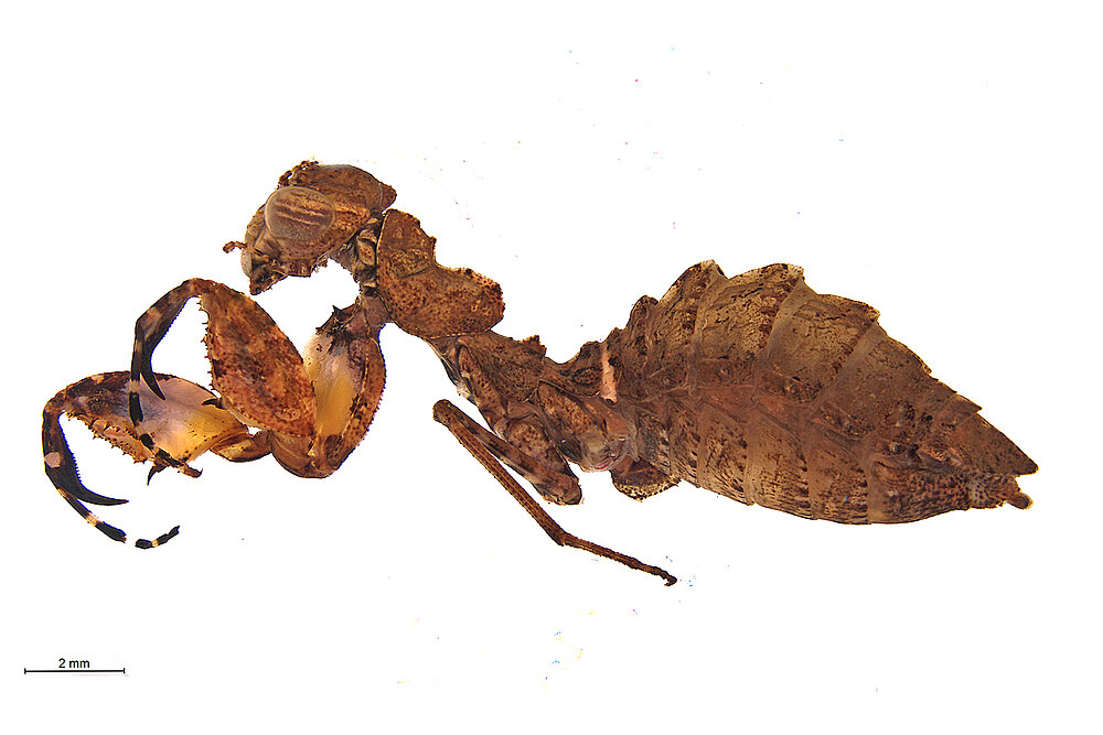 Milledge GA (2024): Review of the genera Glabromantis, Paraoxypilus, and Phthersigena (Mantodea: Nanomantidae: Fulciniinae). Records of the Australian Museum. 76: 69 - 103DOI