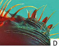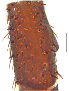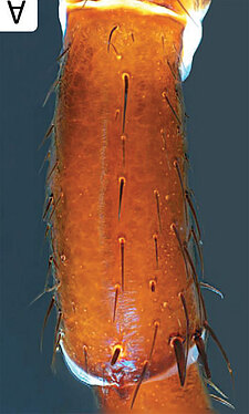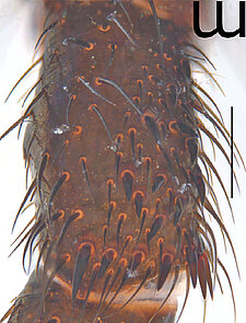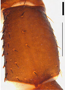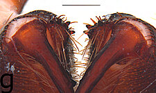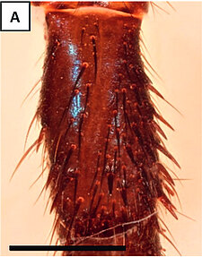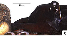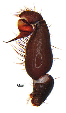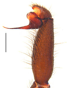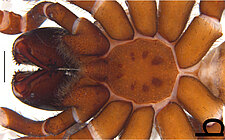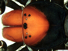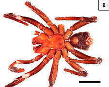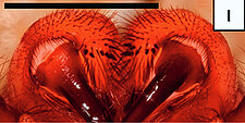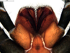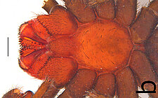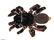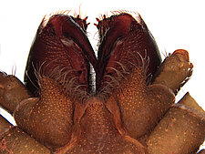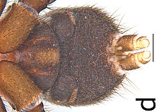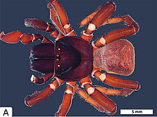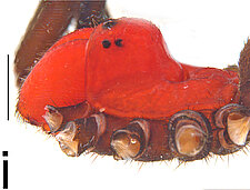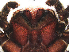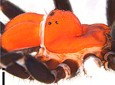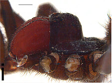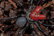 Australian Mouse Spiders are easily recognised amongst other Mygalomorphae (Trapdoor Spiders) by the widely spaced eyes that cover almost the whole width of the distinctly raised cephalic region. Males of some species have bright red chelicerae and cephalic areas (less distinct in females) and iridescent blue abdomens. Currently, Missulena is the only a genus in the family in Australia.