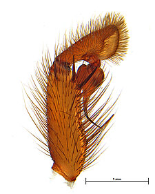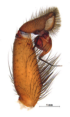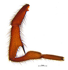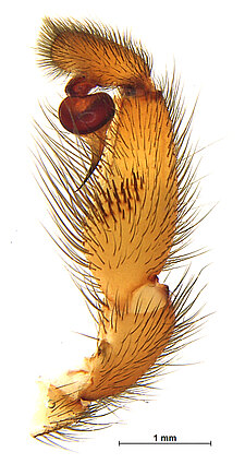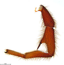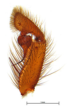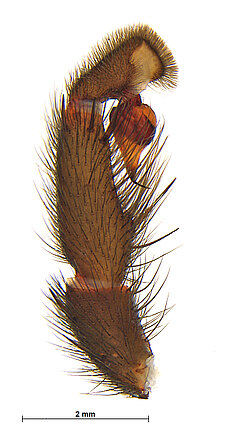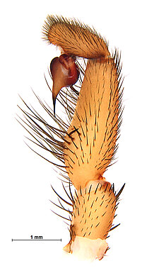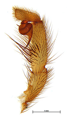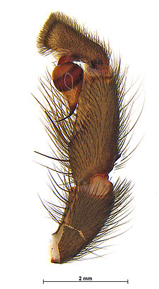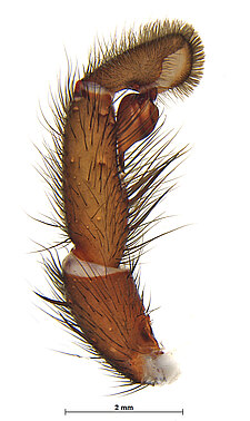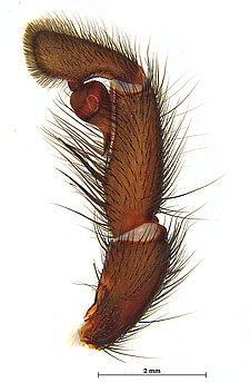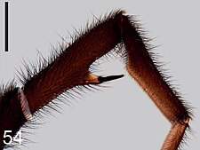 (after Harvey et al. 2018 for Anamini, which corresponds to the family Anamidae after Opatova et al. 2020): Members of the family Anamidae differ from the Nemesiidae by the well-defined posterior heel on the maxillae, the absence of claw tufts and a serrula and both males and females with two rows of teeth on the paired claws.