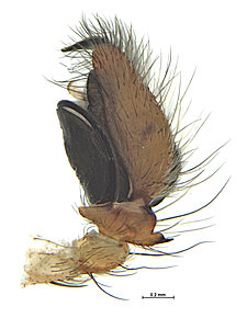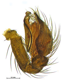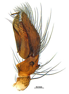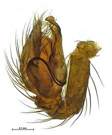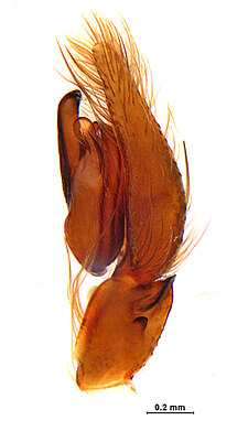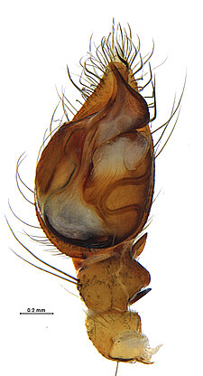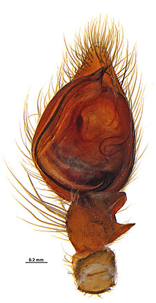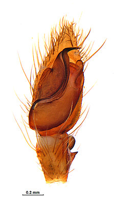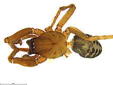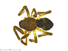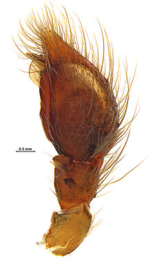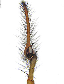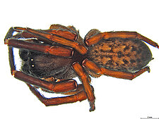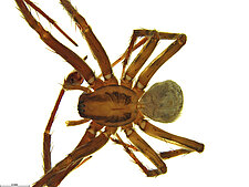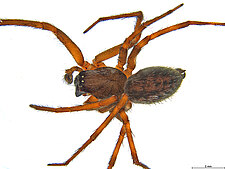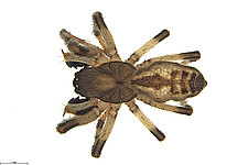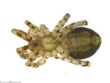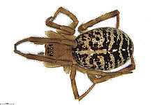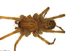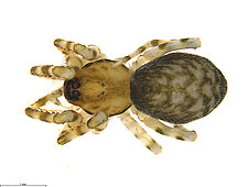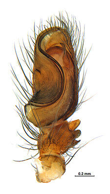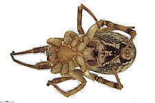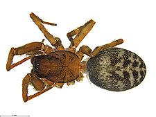 Separated from Badumna by the strong presence of white setae on the body; the possession on the male palp of a large, prolaterally directed, basal tegular bulge.