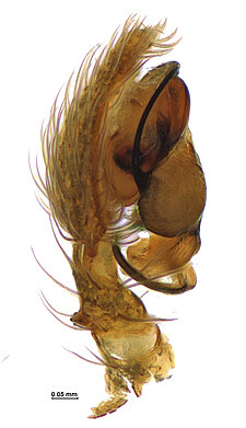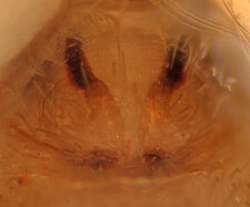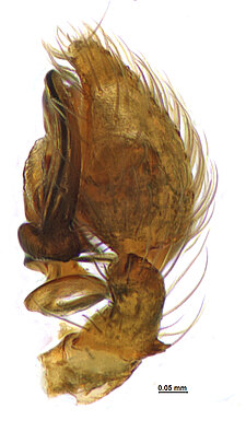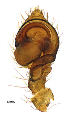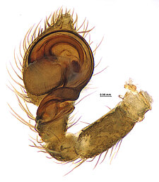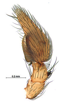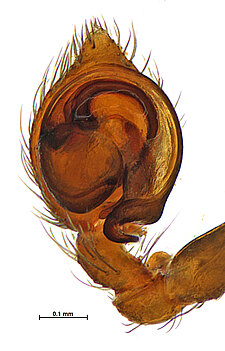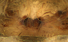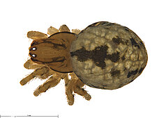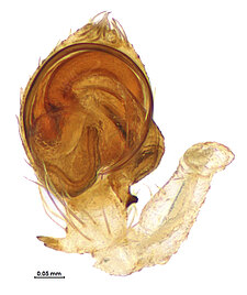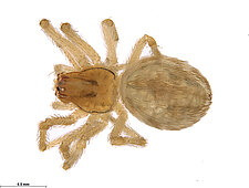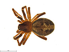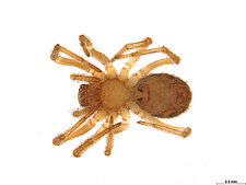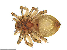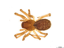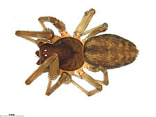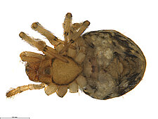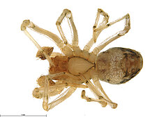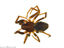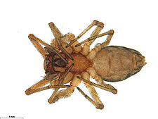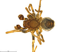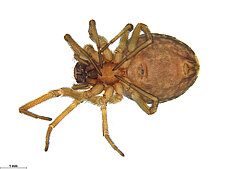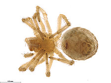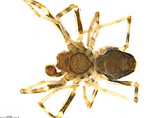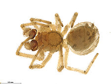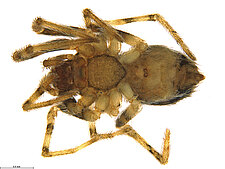 (after Framenau et al. 2014): Meshâweb Spiders (family Dictynidae) are generally small plant dwelling spiders who construct ladder-like webs consisting of parallel threads, crisscrossed with a hackled band of cribellate silk in grass or low shrubs. In New Zealand, species in the genus Arangina build their snares between alluvial gravel in riverbeds and in Australia recent surveys at Western Australian salt lakes recovered species here referred to the genus Devade. Most Dictynidae are easily identified by the peculiar, bowed shape of the chelicerae in males, which are used to disable the female chelicerae during mating, although the chelicerare of male Devade are not bowed.