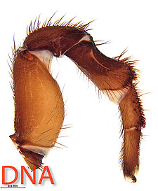Spiders in the family Halonoproctidae are easily distinguished from other Trapdoor Spiders (Mygalomorphae) in Australia by the presence of a saddle-shaped depression on the tibia of leg III. Their carapace has a roundish appearance with a deep, U-shaped fovea.