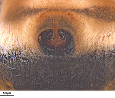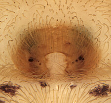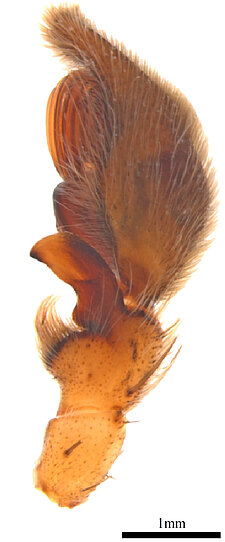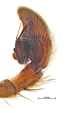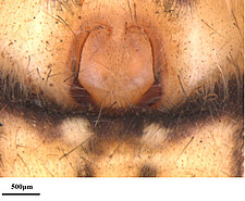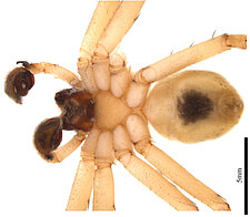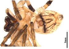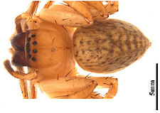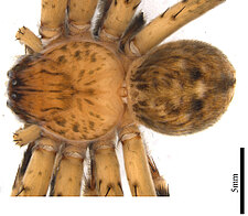 Carapace with pale cephalic region, in some females limited to a pale line from fovea to eye group. Dorsal abdomen with pale cardiac region.