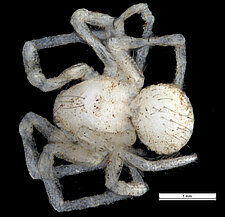 (after Framenau et al. 2014): Dwarf Orb-weaving Spiders (family Symphytognathidae) are tiny spiders of around 1 mm length with some unusual characters, in particular the reduction or lack of female pedipalps, the lack of booklungs (being so small these spiders appear to be able to breathe through their cuticle and trachae) and fused chelicerae. The family was originally described from Australia based on spiders collected in Tasmania; however, Dwarf Orb-weaving Spiders are now known from the tropical, subtropical and southern temperate regions around the world.