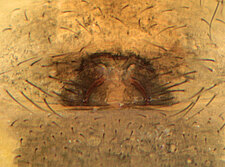(after Álvarez-Padilla & Hormiga 2011): Tetragnathid females can be differentiated from other araneoids by the following combination of features: cheliceral boss present with its cuticle either smooth or similar to the rest of the anterior surface of chelicerae; clypeus more than one AME diameter high; labium trapezoidal and rebordered; a flat epigynum, when present; anterior lateral spinneret piriform spigot bases separated from the spigot shaft by a torus, absent in Meta and Mollemeta; absence of aciniform spigots on the PMS, present in Azilia and Meta; and cylindrical spigots on the posterior lateral spinneret peripheral in position. Males of Tetragnathidae are distinguished from other araneoids by their large cymbial tarsal organ, larger than the surrounding macrosetal bases; absence of tegular apophyses, except for the conductor; conductor and embolus coiled together; apical position of the embolic division; and by having the embolus connected to the tegulum by a membrane.