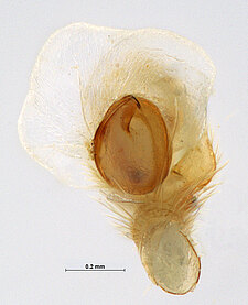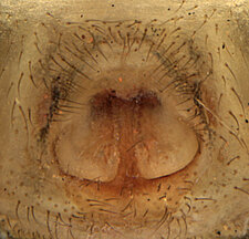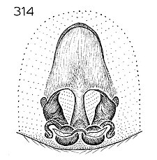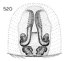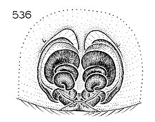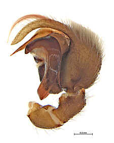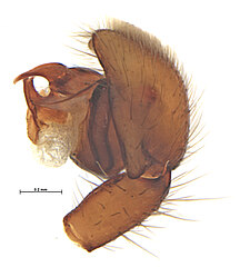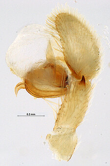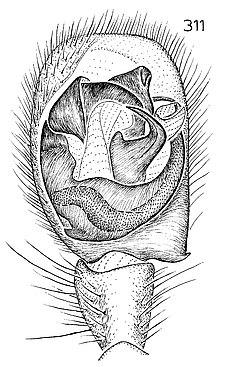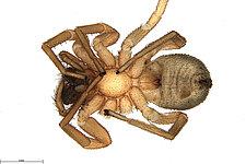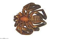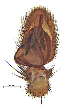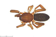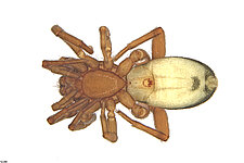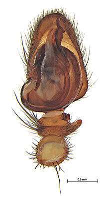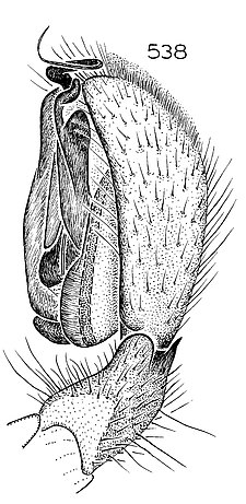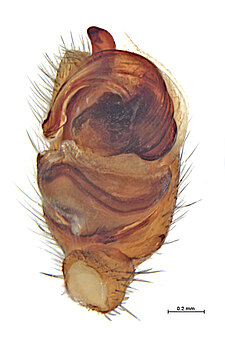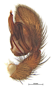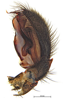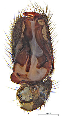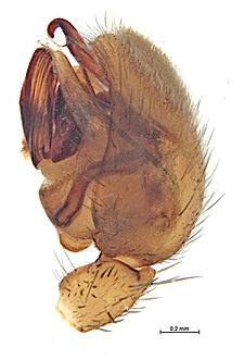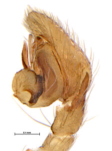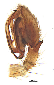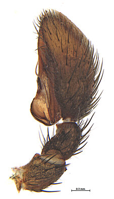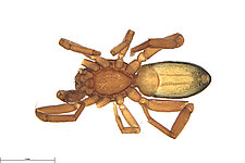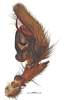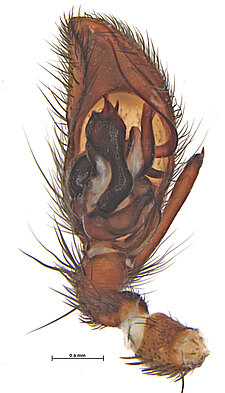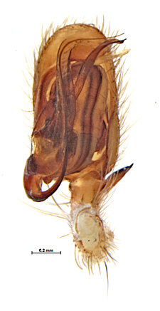 The absence of leg spines readily separates members of this genus from those of Trachytrema and Trachyspina; males have the apex of the cymbium prolonged into a functional conductor.