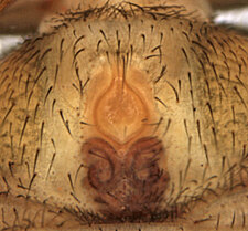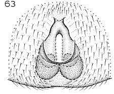 (after Azevedo et al. 2022): The family Trachycosmidae can be diagnosed by the anterior lateral spinnerets separated by the length of their diameter or more; the presence of two major ampullate gland spigots in males and females; anterior lateral spinnerets with complete distal article and without inflatable area; epigynal field formed by an undivided plate, usually with an atrium where the copulatory openings are located; lens of the anterior lateral eyes are convex, raised from surrounding cuticle (compared to Trochanteriidae, in which lens is flat).