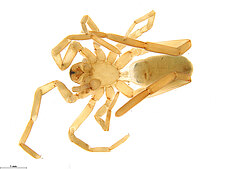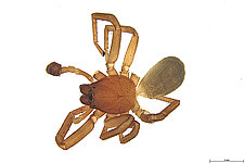 Similar to Tachytrema, but the body is lighter in color (with a pale gray abdomen), the carapace, abdomen and legs are sparsely covered with short, thick, club setae, the anterior tibiae have leg spines, and all the legs spines are distinctively short