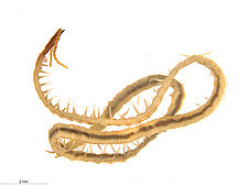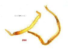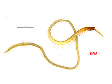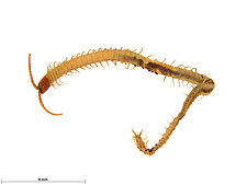 Clypeus bounded by broad paraclypeal sutures, labrum tripartite. Prostemum with chitin lines. Carpophagus structures occupy the segments to the transition. Coxopleural glands are complex, with each coxopleuron having a single large, concealed glandular crypt that is multiglandular and multicanaliculate.