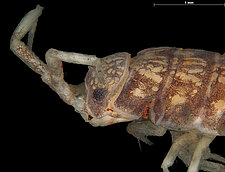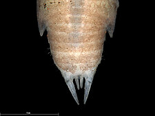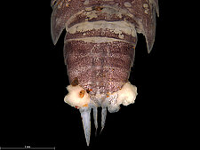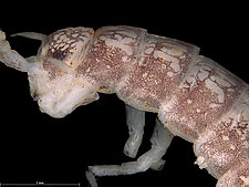 (from Australian Faunal Directory; https://biodiversity.org.au/afd/taxa/PHILOSCIIDAE ; accessed 17 August 2022): Animals do not conglobate. Pleonal epimera 3–5 small so that body outline is interrupted between pereon and pleon. (In Eurygastor Vandel the break in outline is less than usual). Head with supra-antennal line present; frontal line present, incomplete or absent. Head without conspicuous lobes. Antenna 2 flagellum with 3 articles. Maxillipedal palp reduced, not much larger than endite, with only 3 articles. No dactylar organ on pereopods in Australian species. Male with penis not bifurcated distally. Typically without pleopodal lungs.