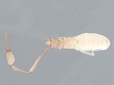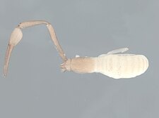 (after Harvey et al. 2023): The family Hyidae currently includes those pseudoscorpions in which the femora of legs I and II have a basi-dorsal mound surmounted by a small seta and slit sensilla, the setae of the female anterior genital operculum are extremely small, and the pedipalpal femur has 2–3 stout setae on the retrolateral-basal margin.