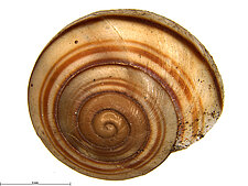 Typically medium sized shell with conspicuous, reddish-brown spiral banding on a brighter background of white to ochre colour.