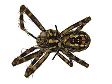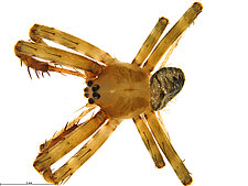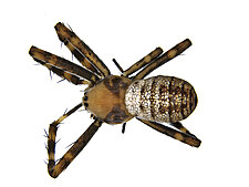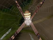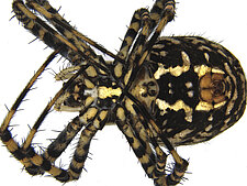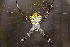 Orb-weaving spiders in the genus Argiope typically have a procurved posterior eye row, i.e. the lateral eyes are situated in front of the median eyes. Molecular data suggest that the genera Gea and Neogea are junior synonyms of Argiope.