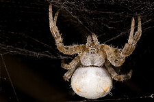 (after Framenau & Scharff 2009): Cyrtophora differs from other araneid genera (excluding Argiope, Gea, Manogea, Mecynogea and Kapogea) by having the second to fourth combined patella and tibia slightly shorter than the femur of the same leg and shorter than the combined metatarsus and tarsus of the same leg, by relatively heavy legs and by a slight separation of the lateral eyes. Cyrtophora differs from Argiope, Gea and Mecynogea by a recurved or straight posterior eye row, from Manogea by a wider cephalic region and from Kapogea by a combination of somatic and genitalic characters, including an embolus that is placed near the median apophysis and being supported by a conductor. Cytophora differs from Cyrtobill by genitalic characters, in particular the absence of a basal cymbium concavity in the male pedipalp and the absence of a scape in the female epigyne (see above).