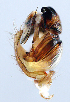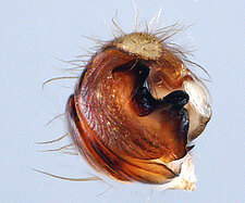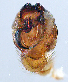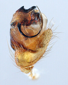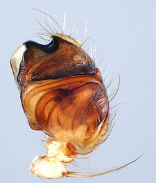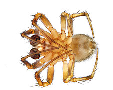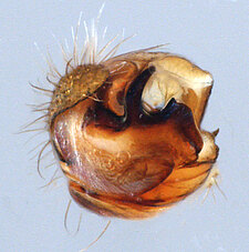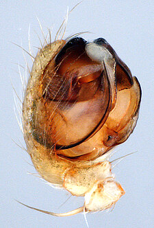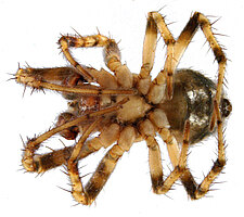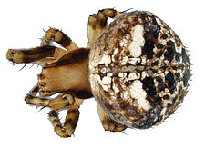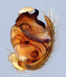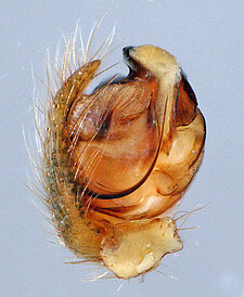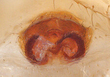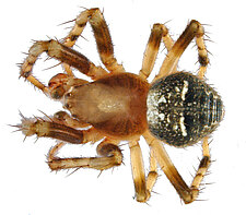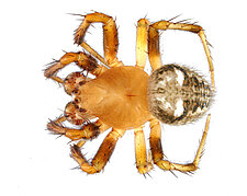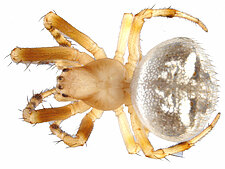 Species of Genus 3339 (the 'Araneus' albotriangulus group) are small orb-weaving spiders with a characteristic white triangle on the abdomen, which is often reduced, specifically in males. The male pedipalp has a heavily sclerotised apical portion (possibly the terminal apophysis), the shape of which is species-specific. The median apophysis is reduced and the embolus prominent and very long and curved. The epigyne is of a characteristic 'nose-shape'. There are probably about five species in Australia which require genitalic examination for species-level identification.