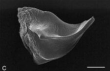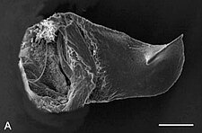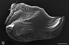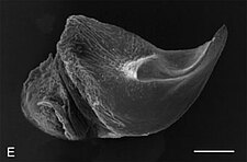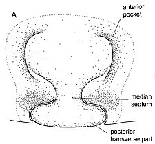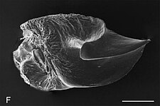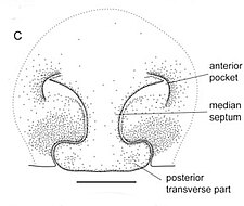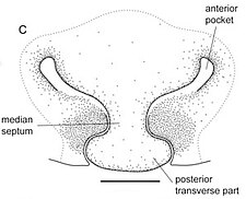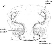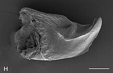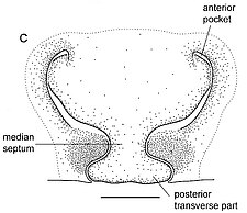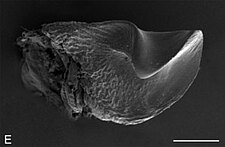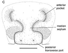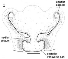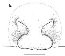 (after Langlands & Framenau 2010): Hoggicosa (referred to as 'bicolor-group' by MckKay 1973, 1975) differs from other Lycosinae the shape of the female epigyne, with the distance between the anterior pockets greater than the width of the posterior transverse part. A second synapomorphy is a patch of ten to 30 dorsally curved macrosetae on the tip of the cymbium in males. In lateral view, the shield of the prosoma is highest in the cephalic region sloping gently towards posterior end. The prosoma is uniform in colour or with indistinct radial pattern; median or lateral bands are absent. Females of several species show striking contrast in the colouration of the legs and opisthosoma (similarly coloured as penultimate males).