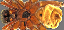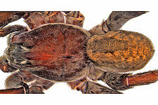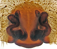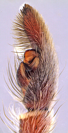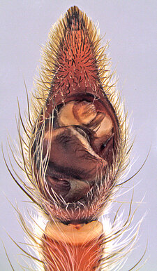(after Framenau 2017): Somatic morphology, in particular the lack of a distinct colour pattern on carapace and abdomen (in particular in live spiders), places Portacosa in close affinity with Hoggicosa; however, males of Portacosa lack the apical, dorsally bent setae on the cymbium tip and the median septum of the female epigyne is narrower anteriorly than the with of the posterior transverse part. A putative apomorphy of the genus is the shape of the tegular apophysis. Unlike any other member of the family Lycosinae in Australia, the ridge of the tegular apophysis (connecting its apical point and ventral process) is very sharp and situated more towards the retrolateral edge of the tegular apophysis, whereas it reaches from the apical point to a more central ventral process in other Lycosinae in Australia. This corresponds to a continuous edge of the anterior hood of the epigyne with the median septum, whilst this edge is often interrupted in other Lycosinae in Australia. Portacosa lacks any of the proposed synapomorphies of other Australian members of the Lycosinae i.e. the tegular apophysis is not retrolaterally incised as in Venator, the carapace lacks a Union-Jack pattern as in Tasmanicosa, the pedipalp lacks a large patch of apical setae as in Knoelle, the tegular apophysis is not elongated and spiders do not show turret-building behaviour as in Dingosa, the carapace and abdomen are not dorsoventrally flattened as in Tapetosa, the tegular apophysis lacks apical serrations as in Costacosa, the abdomen is not dark with transverse light bands and spiders do not display turret-building behaviour as in Mainosa, and male pedipalp cymbia do not have a compound apical hook as in Venatrix and Tuberculosa.