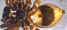(after Framenau 2015): Somatic characters such as size and colouration place Venator close to Knoelle and Costacosa; however, females differ by a raised epigynal atrium that forms an edge against the median septum, which corresponds to a retrolateral incision in the tegular apophysis of the male pedipalp in most species (but not V. immansuetus. Together with the typical somatic colouration of spiders in the genus, in particular the black shield covering approximately three quarters of the venter, these characters are not known to occur in any other wolf spider genus in Australia or world-wide.