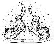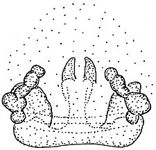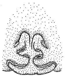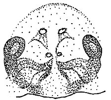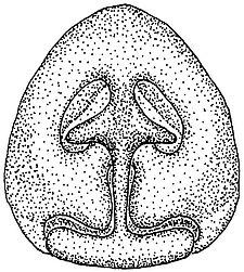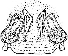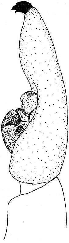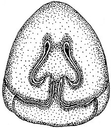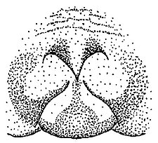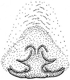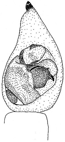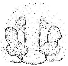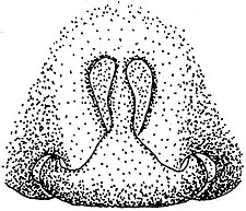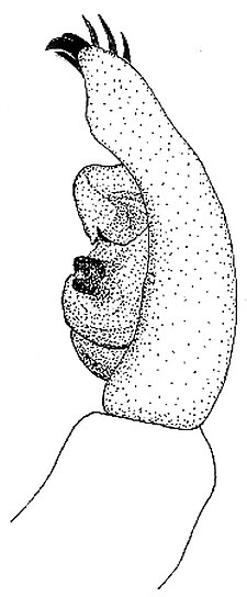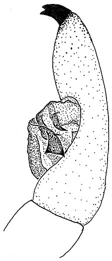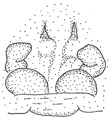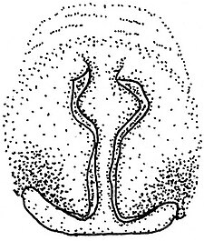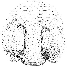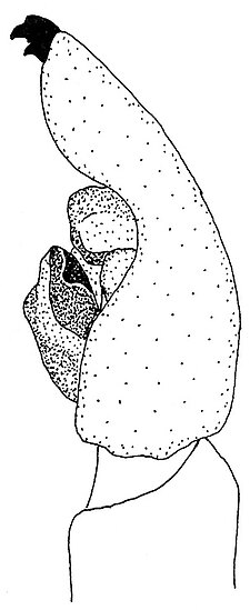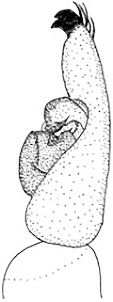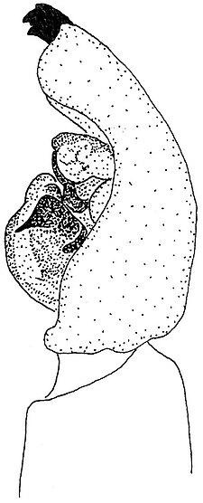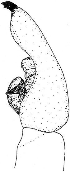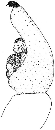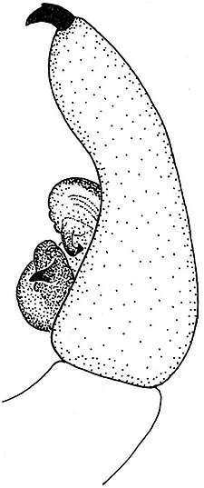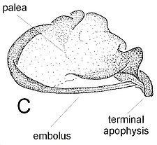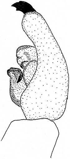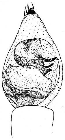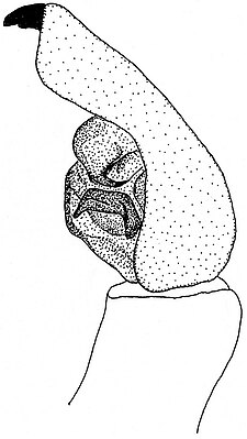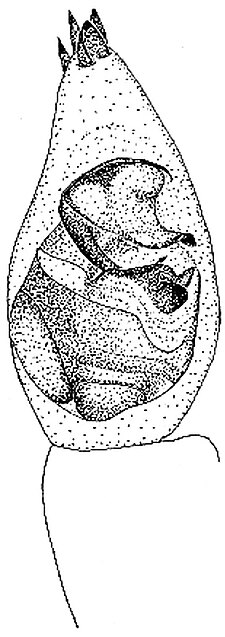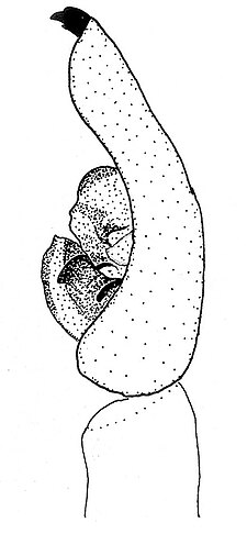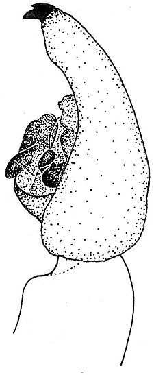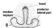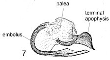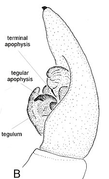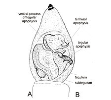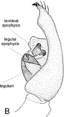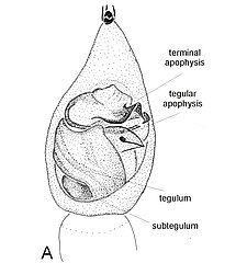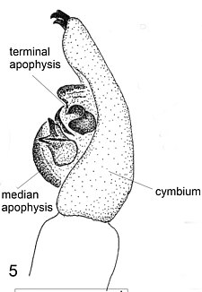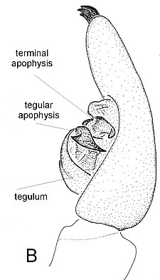 (after Framenau & Vink 2001): Males of Venatrix differ from other lycosid genera by the combination of two characters: a tubercle at the outer curve of the fangs and a large claw at the tip of the cymbium. The epigyne of Venatrix is anchor- or inverted T-shaped and most species have a distinct median tranverse part. The venter of Venatrix is dark and often has a light pattern of lines or spots.